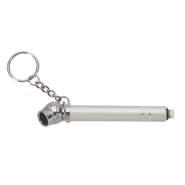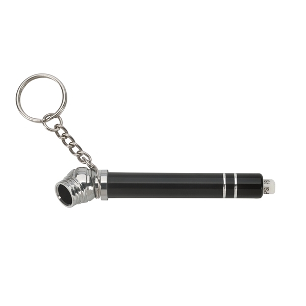 - A mini tire pressure gauge and key ring all in one! This versatile, compact product helps you keep your tires properly inflated, which can improve gas mileage. The pressure gauge measures up to 50 PSI.