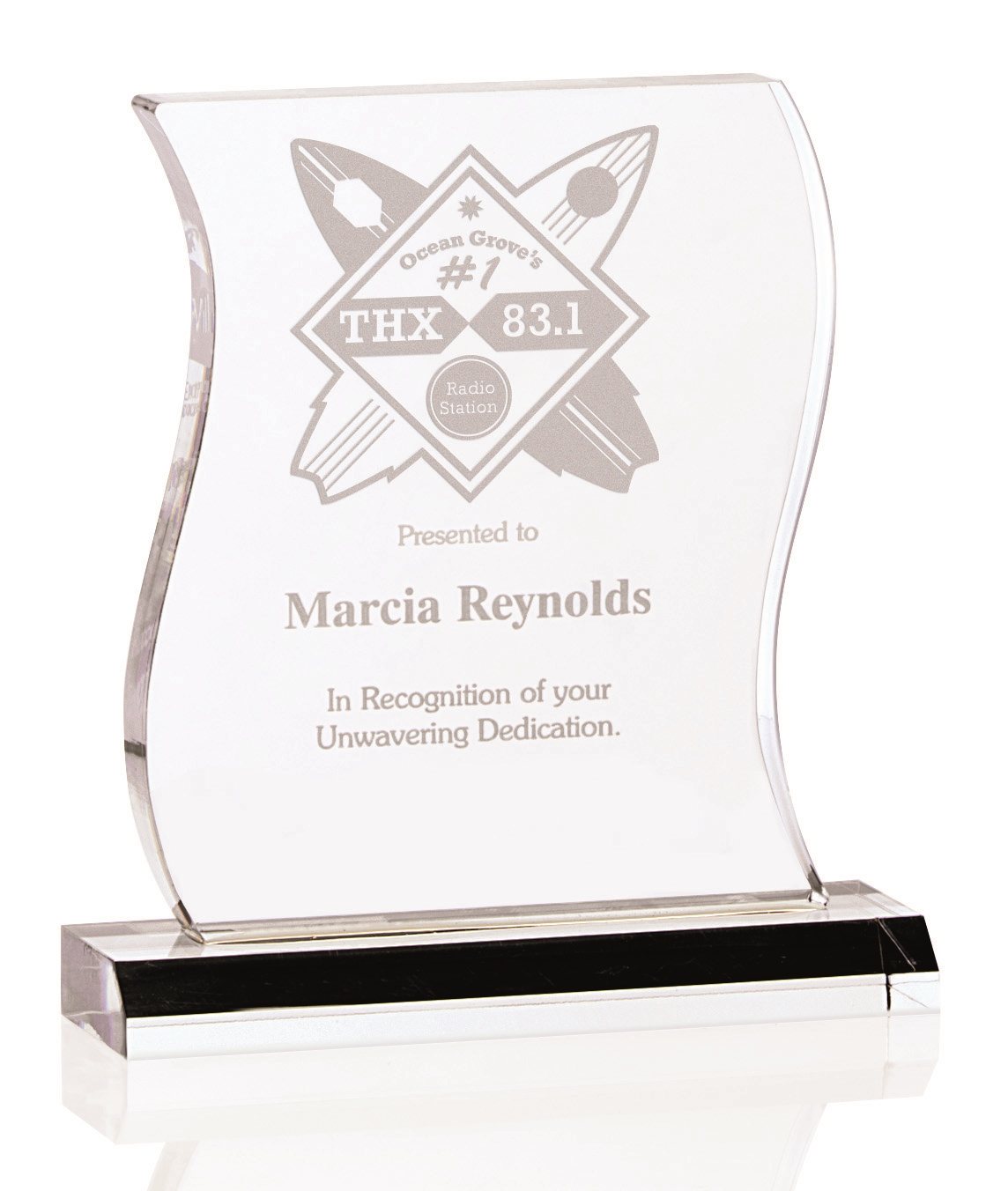 - The wavy design of this acrylic award provides plenty of room to tout accomplishments big and small.