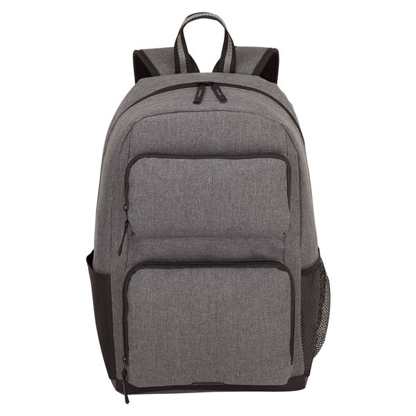 - The Virginia backpack is made from durable 2-tone 600D polyester, features a padded laptop compartment (fits up to 15.3" laptop) and tablet sleeve with hook and loop closure, and two front zippered pockets.