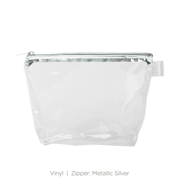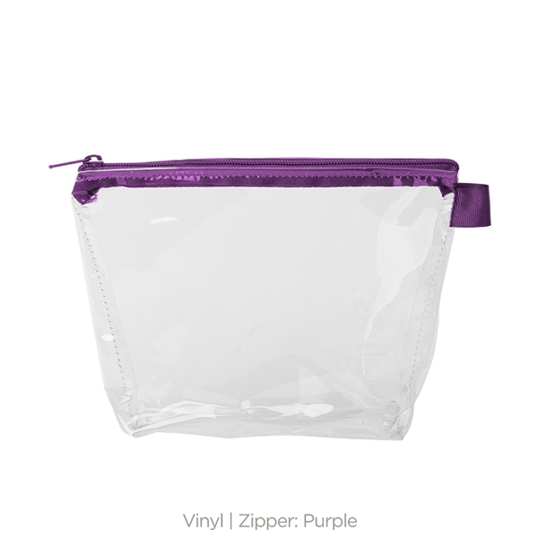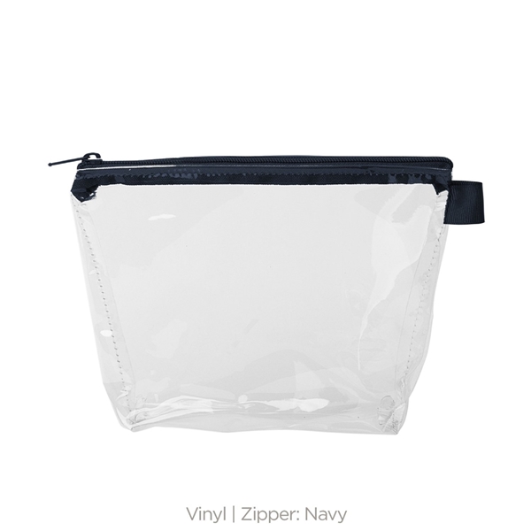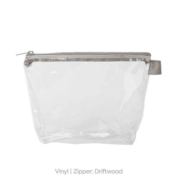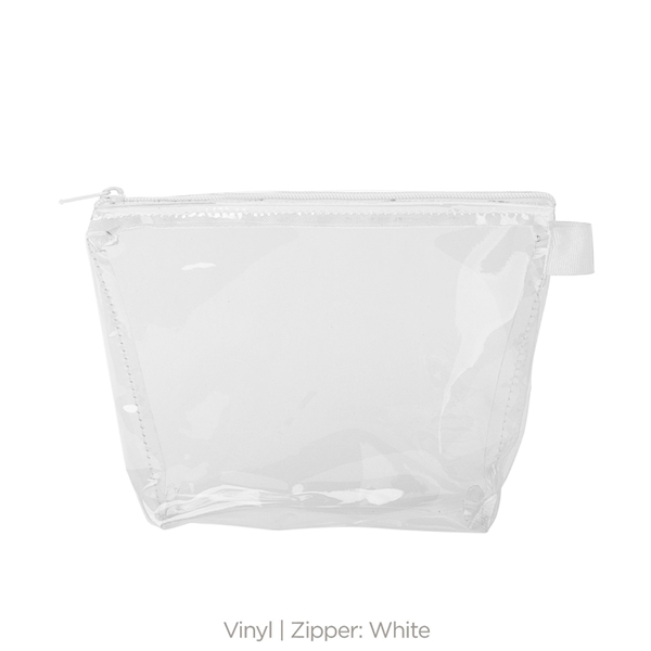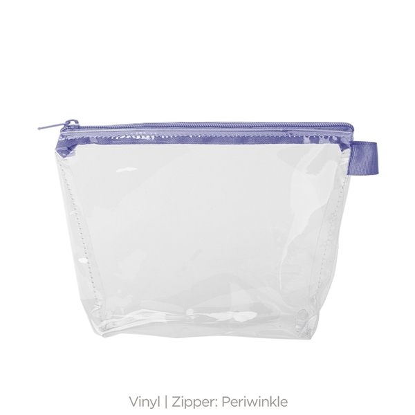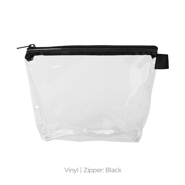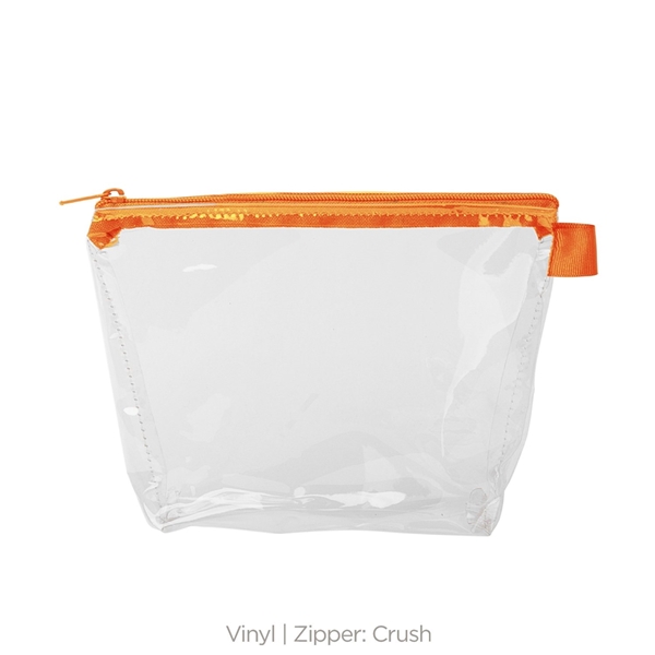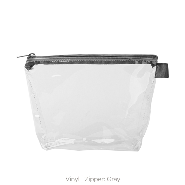 - With a wide, zippered closure and a good sized gusset, this pouch can hold everything from toiletries and makeup to desk supplies and small tools.