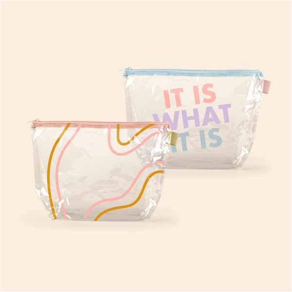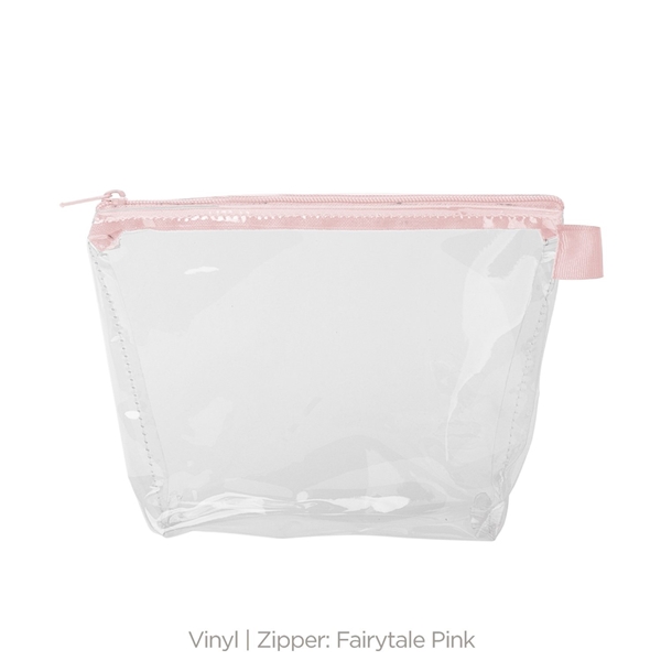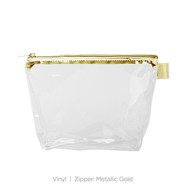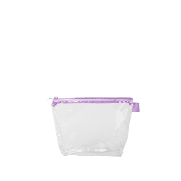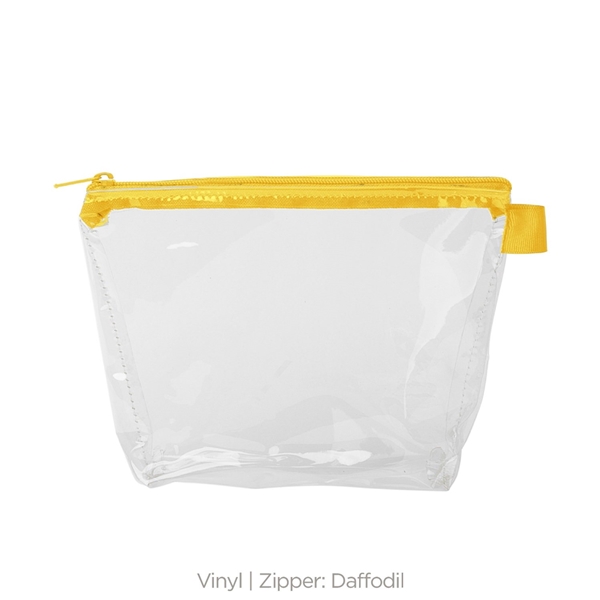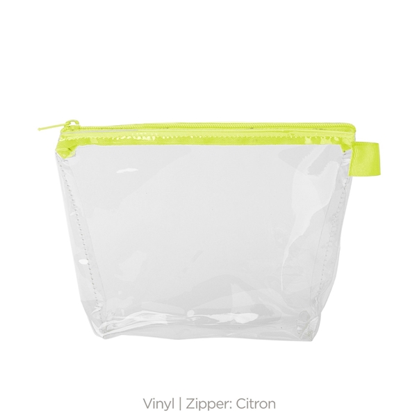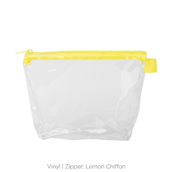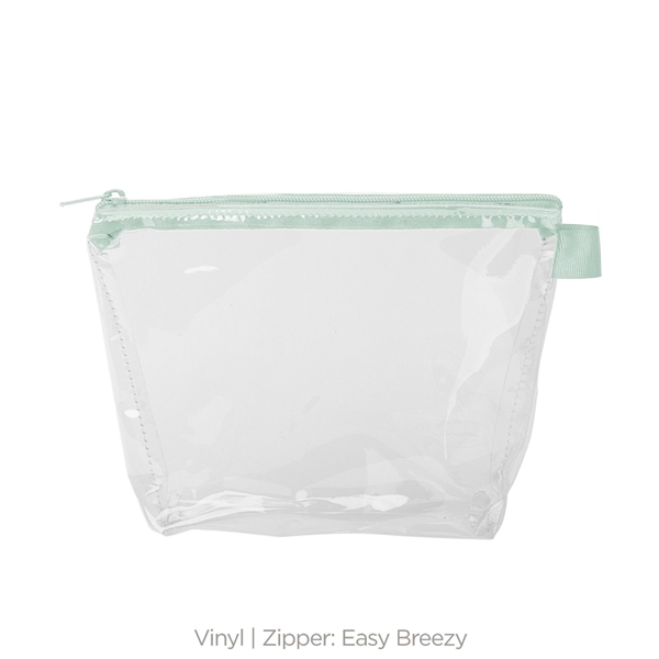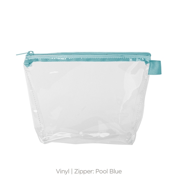 - With a wide, zippered closure and a good sized gusset, this pouch can hold everything from toiletries and makeup to desk supplies and small tools.
