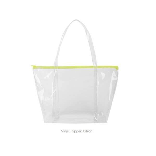 - The exterior gusset, large imprint area, and zippered closure make this a unique tote; a tote you need!