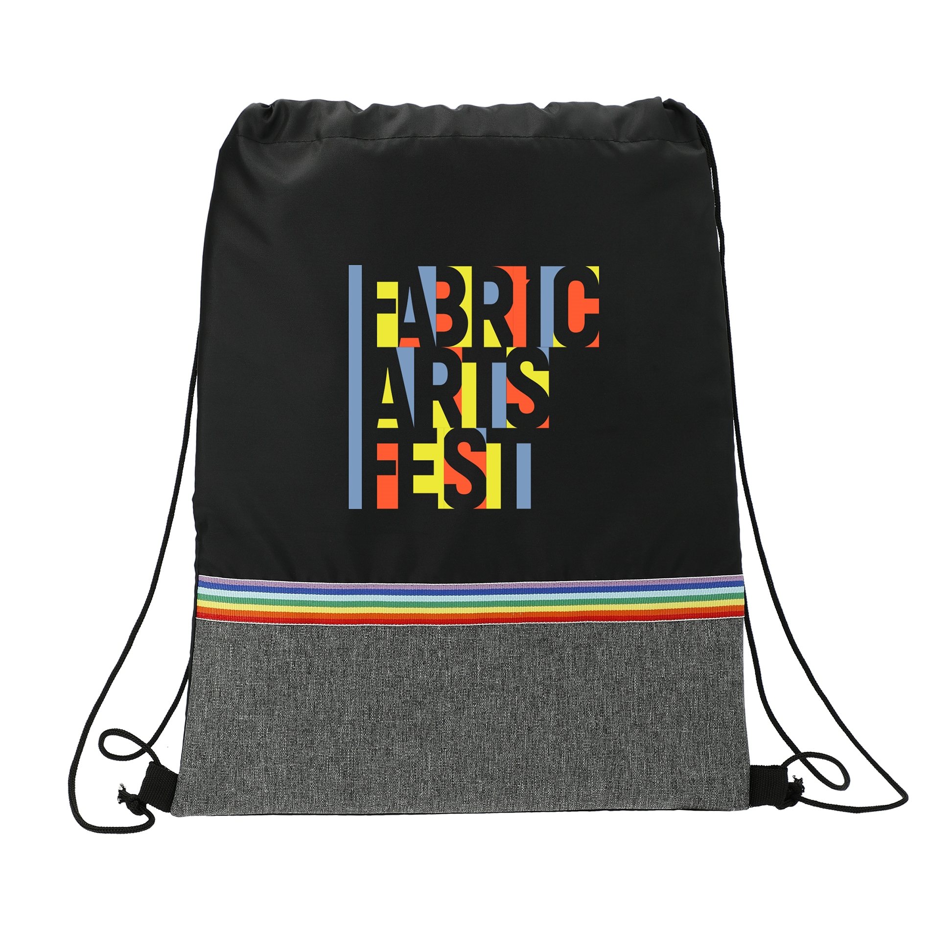 Add a burst of color to your marketing campaign with this eye-catching rainbow drawstring bag, made from recycled PET materials- The Rainbow rPET Drawstring Bag features a pop of rainbow colors and graphite color-blocking.