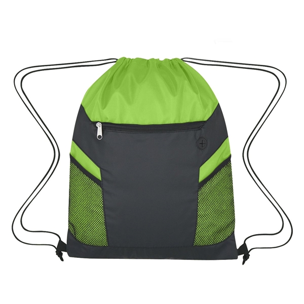 Robin Drawstring Polyester Bag With Front Zipper Pocket