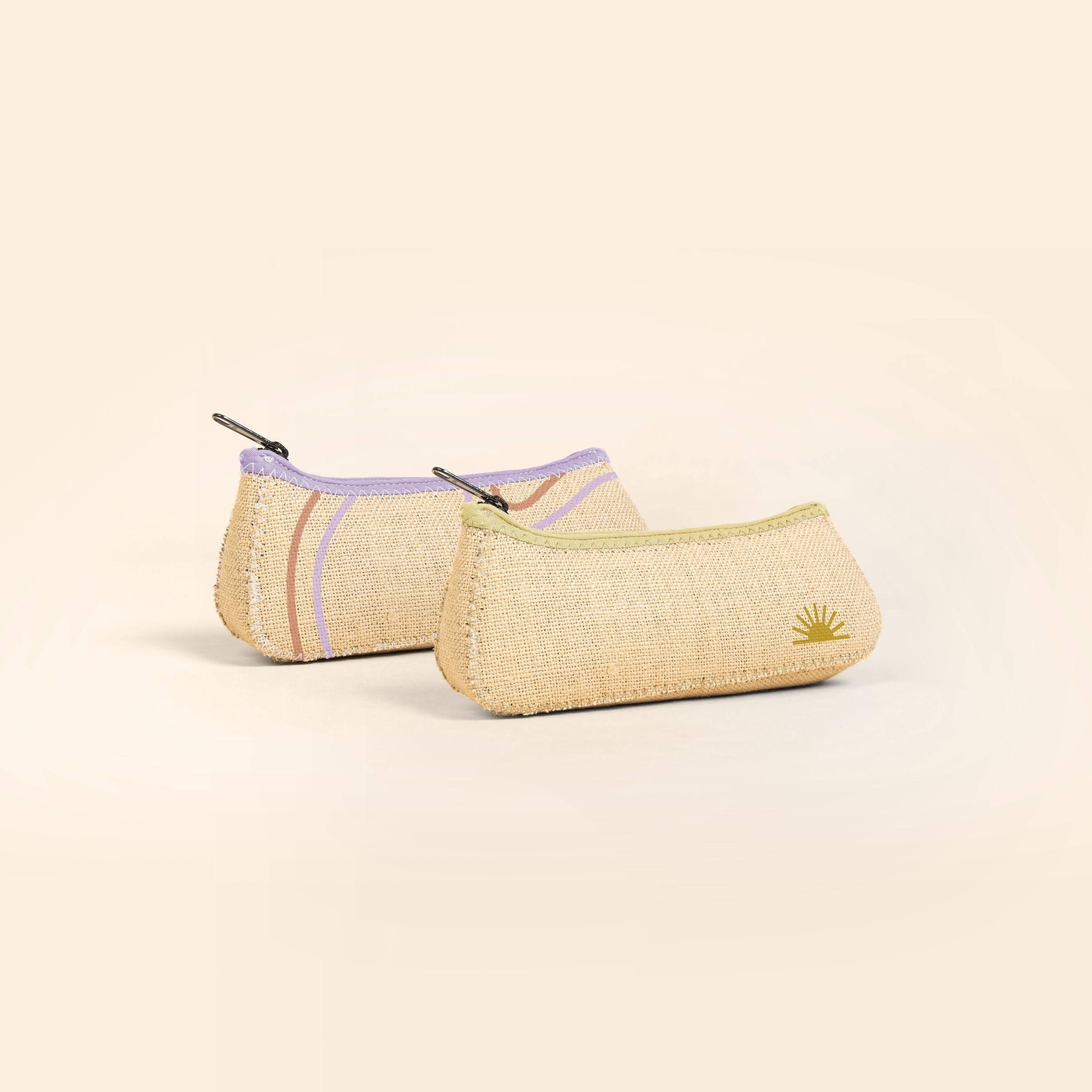 - Short and gusseted, the Canoe is a Burlap/High-Quality Neoprene ( Wetsuit Material ) pouch with a zipper closure and customizable colored stitching and bias trim at the top.
