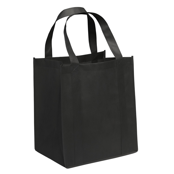 Meet the essential accessory every eco-conscious shopper needs: our Big Thunder Grocery Tote. Crafted from premium 100 GSM non-woven material, this tote offers unparalleled quality and stands out for its durability. You'll find its sturdy plastic bottom insert and dual-reinforced handles perfect for carrying even the heaviest of loads, making those grocery trips a breeze. Gone are the days of flimsy bags that can't handle the pressure. Our Big Thunder tote is more than just a bag—it's your reliable shopping companion.