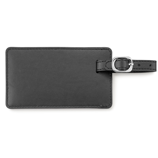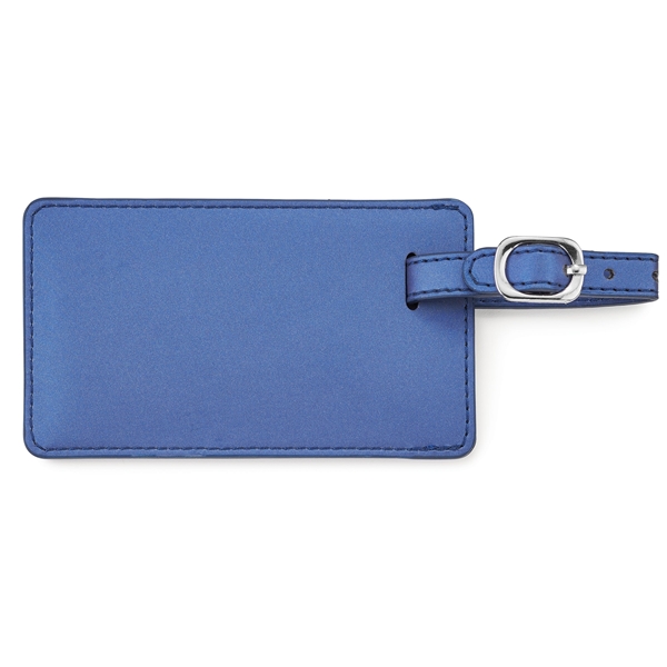 - Easily identify your bag when you attach this matte metallic vinyl Neoskin® luggage tag. The buckle and strap closure will ensure that this tag is securely fastened. Simply insert a standard business card or fill out the information card included.