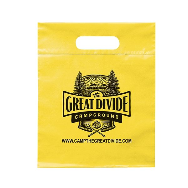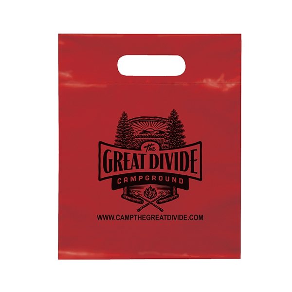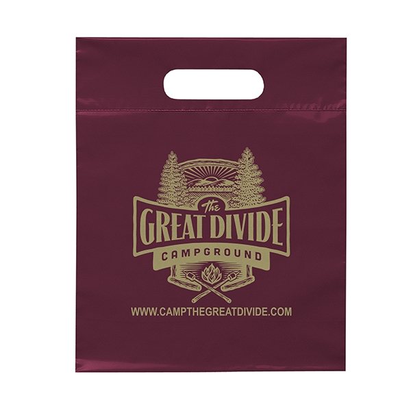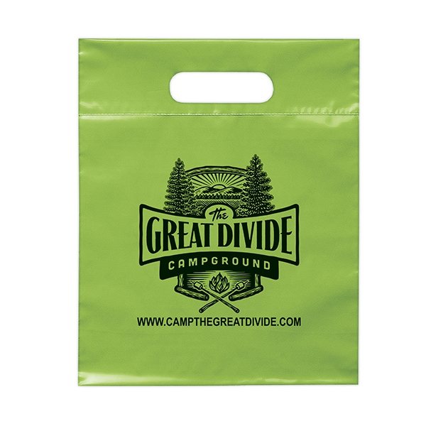 About this Promotional Frosted Plastic Flexo Ink Multi Color Die Cut Handle Bag 9.5 X 12: