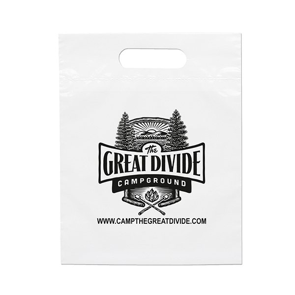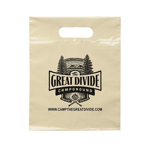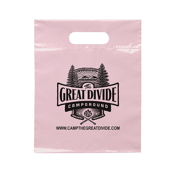 Details on making your custom Frosted Plastic Flexo Ink Multi Color Die Cut Handle Bag 9.5" X 12"