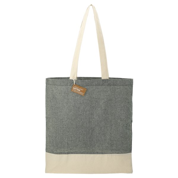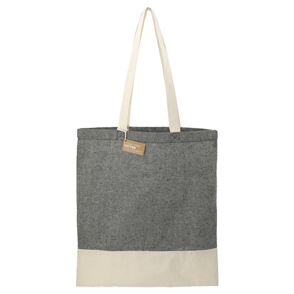 - High recycled content: Each Split Recycled 5oz Cotton Twill Convention Tote contains approximately 70%-80% recycled cotton and 20%-30% RPET, helping reduce demand for virgin materials.