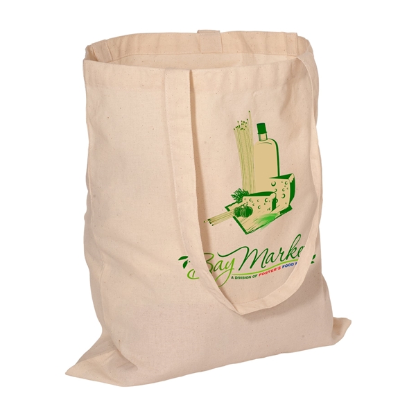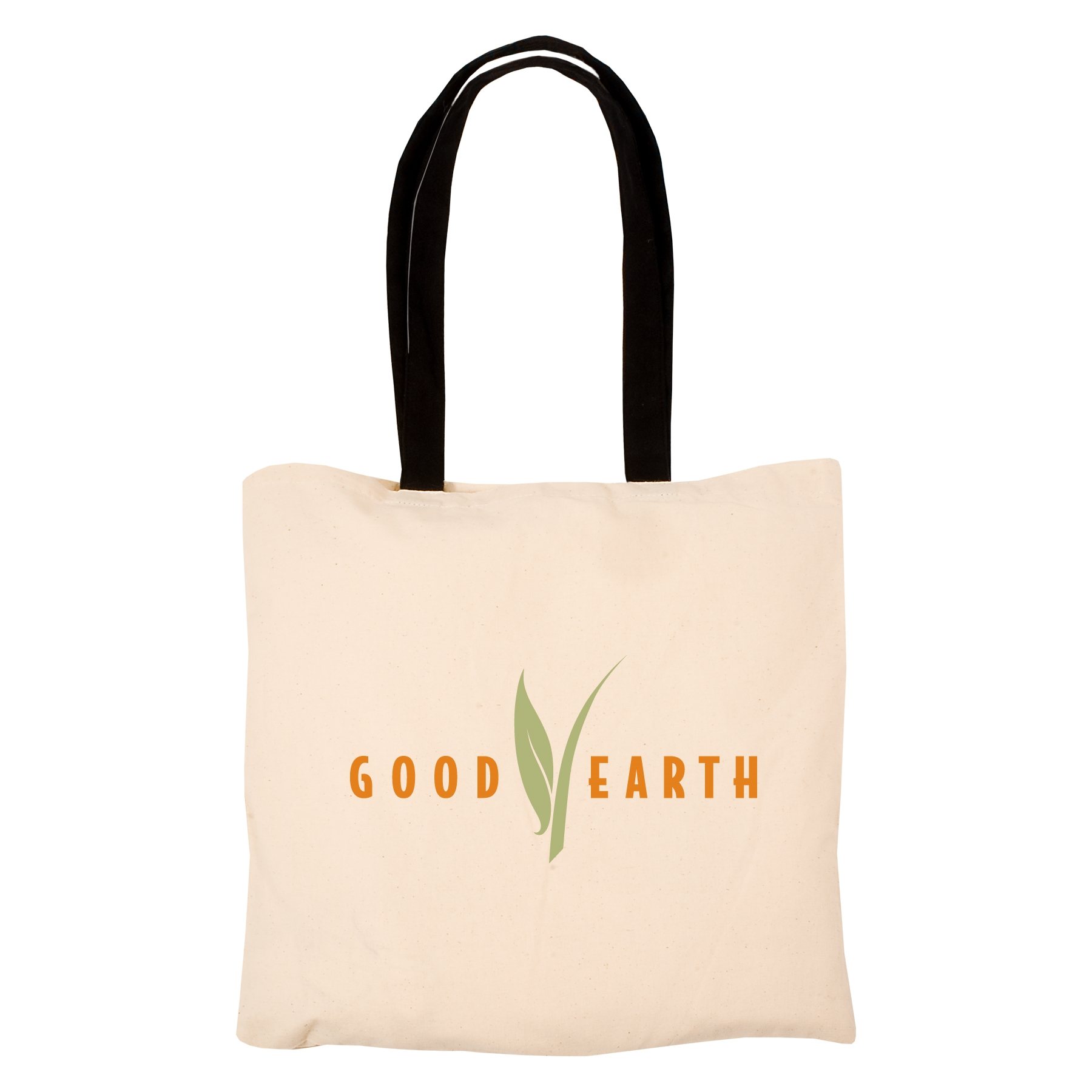 - 4 oz natural cotton tote with contrasting handles (approx. 23"l x 1"w).