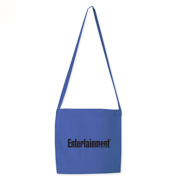 - 12 oz cotton canvas messenger tote bag with long shoulder strap.