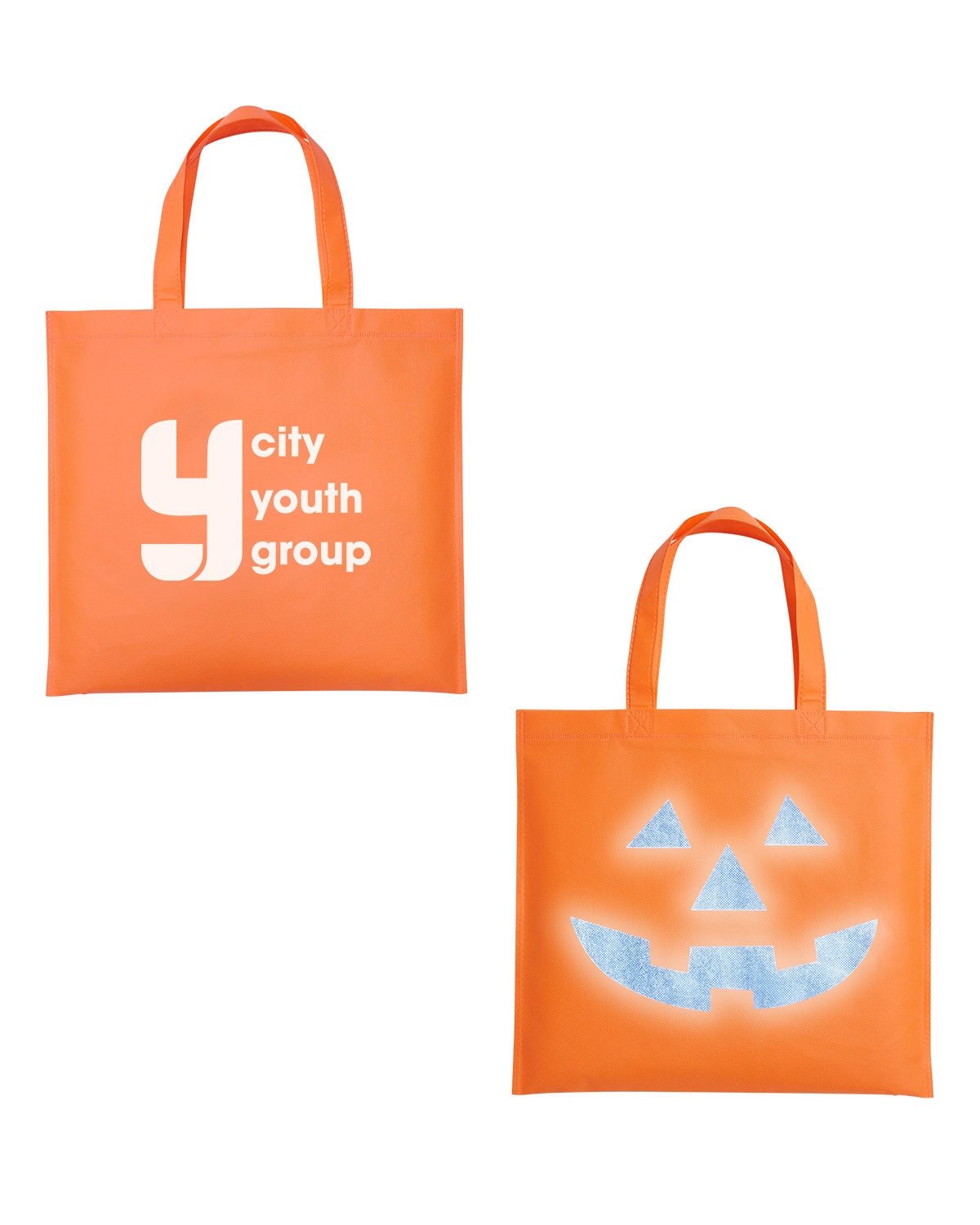 - Light up the night with our Glow-in-the-Dark Pumpkin Face Tote Bag and be the envy of all your fellow ghouls and goblins