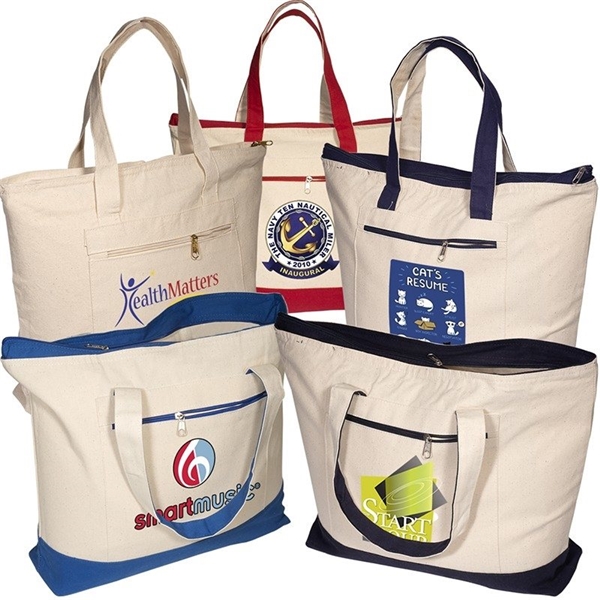 About this Promotional Two Toned Zippered Cotton Tote Bag 18w x 14h x 4d:
