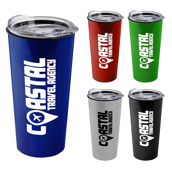 - 18 oz Metallic Double-Wall insulated travel/coffee cup with Clear Slide lid