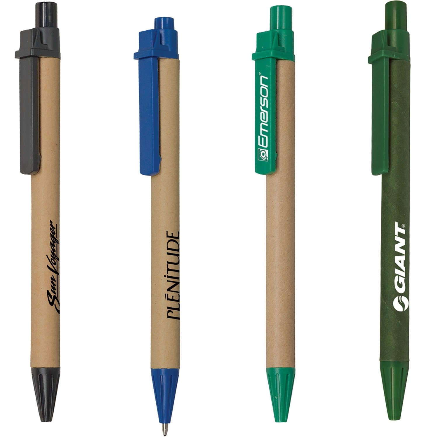 We offer the option of color imprint on our eco paper barrel pens. With this option, you can showcase your company logo or slogan on the barrel of the pen in a vibrant and eye-catching way. Not only is this a great way to market your brand, but it's also an environmentally-friendly option as the pen is made from recycled paper.This environmentally-friendly writing utensil not only showcases your brand's commitment to sustainability, but it's also practical and versatile. The sleek and sturdy barrel design ensures that your brand's logo and messaging will stand out and be seen on a daily basis, whether it's at trade shows, corporate events, or just everyday use among colleagues and clients.