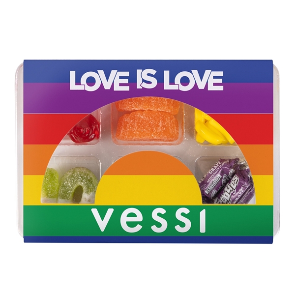 - Pride rainbow die cut nested candy box features 6 cavities of assorted candy fills.