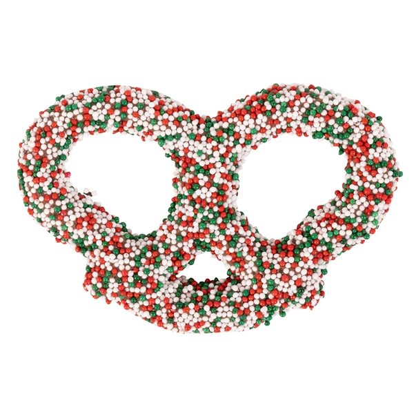 - Box of premier chocolate pretzels comes complete with 2 of each: Christmas non pariel coated milk chocolate, milk chocolate, dark chocolate, milk chocolate with crushed peppermint and dark and white chocolate chips.