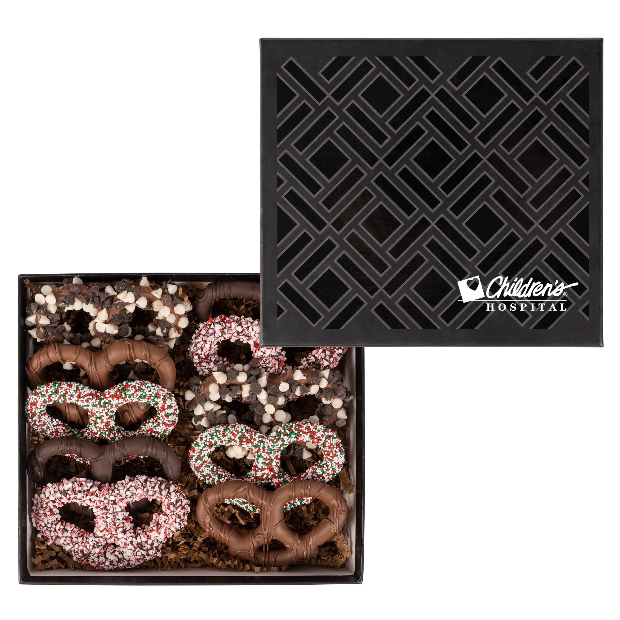 Premier Chocolate Pretzel Gift Box with Full Color Lid