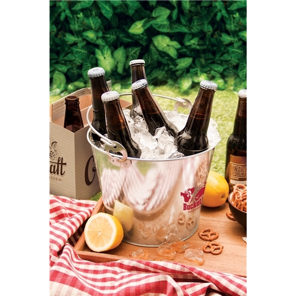About this Promotional 5 Qt Galvanized Ice Bucket w / Bottle Opener: