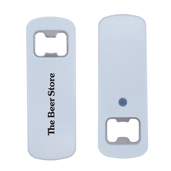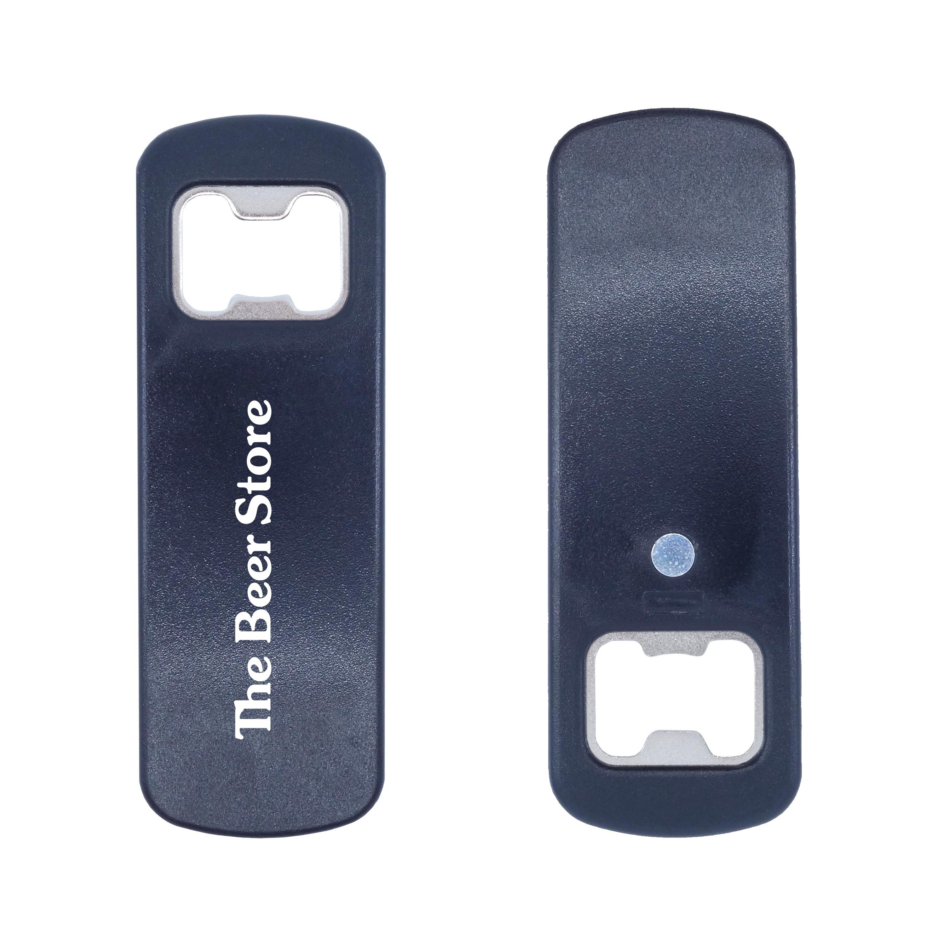 - Small and sleek, take this opener with you and be ready to pop a cold one wherever you go with your branded bottle opener with magnet.