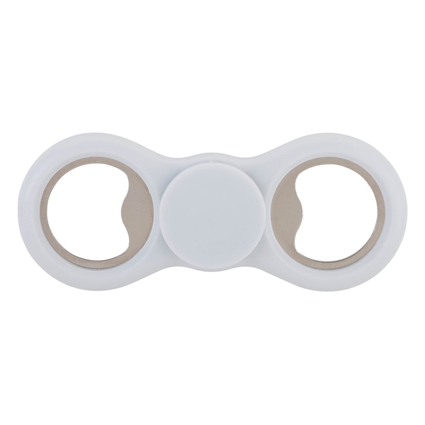 - This two-armed spinner comes with built-in metal bottle openers on either end, has a central bearing that produces a smooth spin and a slight indent on the finger surface to keep the party in place.