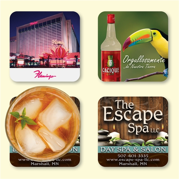- Show off your logo and marketing message wherever drinks are served.