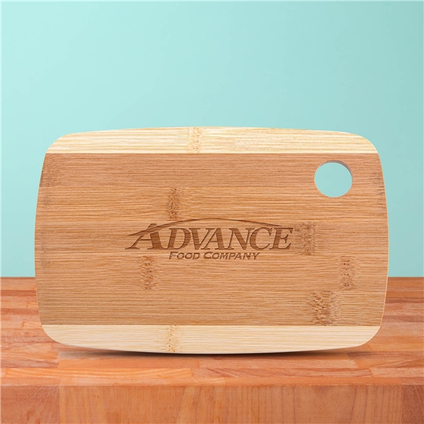 About this Promotional The Camden 9- Inch Two - Tone Bamboo Cutting Board: