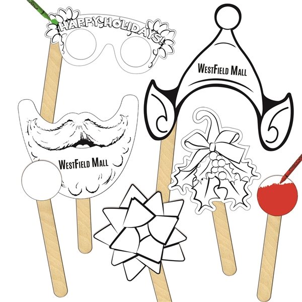 - Kit includes 7 stock shape pieces with outlines ready to color: glasses, beard, elf hat with ears, mustache/beard combo, ribbon bow , missile toe & 2- rudolph red noses.