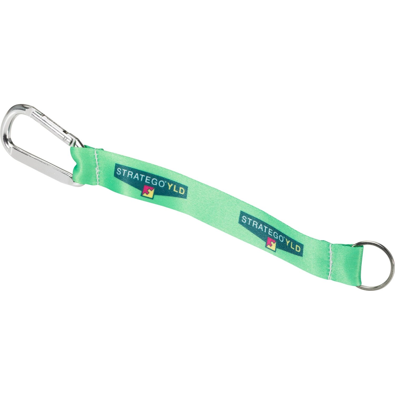 - Heavy weight satin strap with carabiner hook and split key ring.