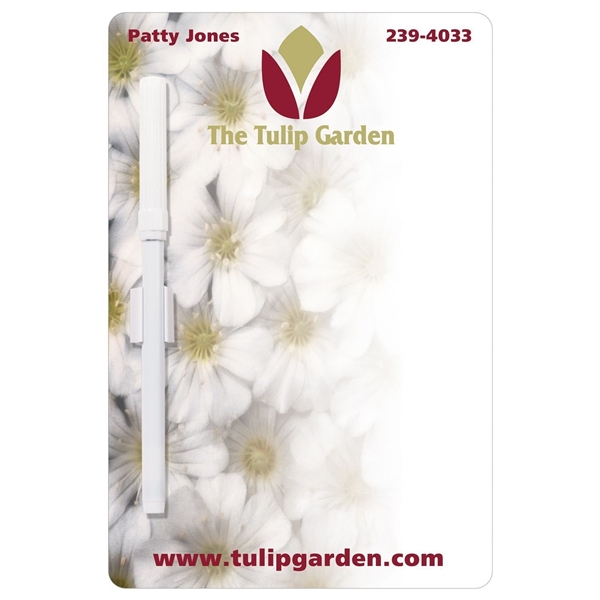 - Item comes with a wet erasable pen with clip and a choice of .012 magnets attached to the back.