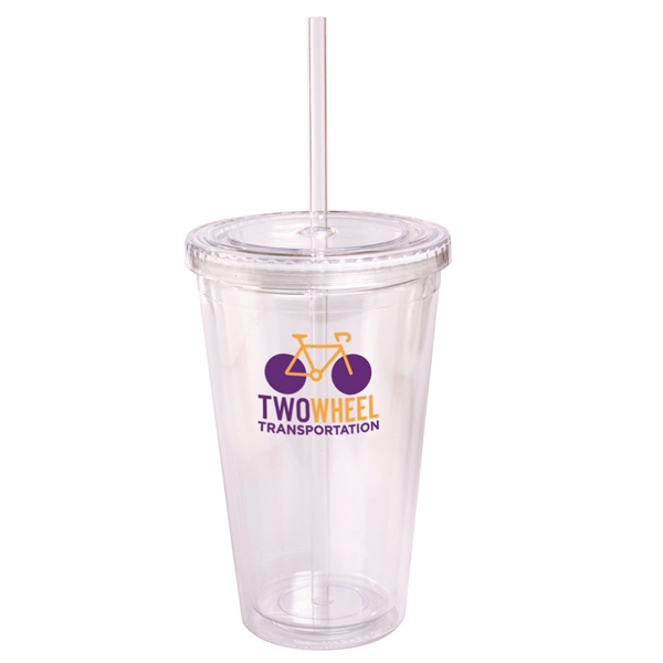 - 16 oz (470 mL) BPA-free double wall Acrylic tumbler with matching color rigid straw included (9"l)