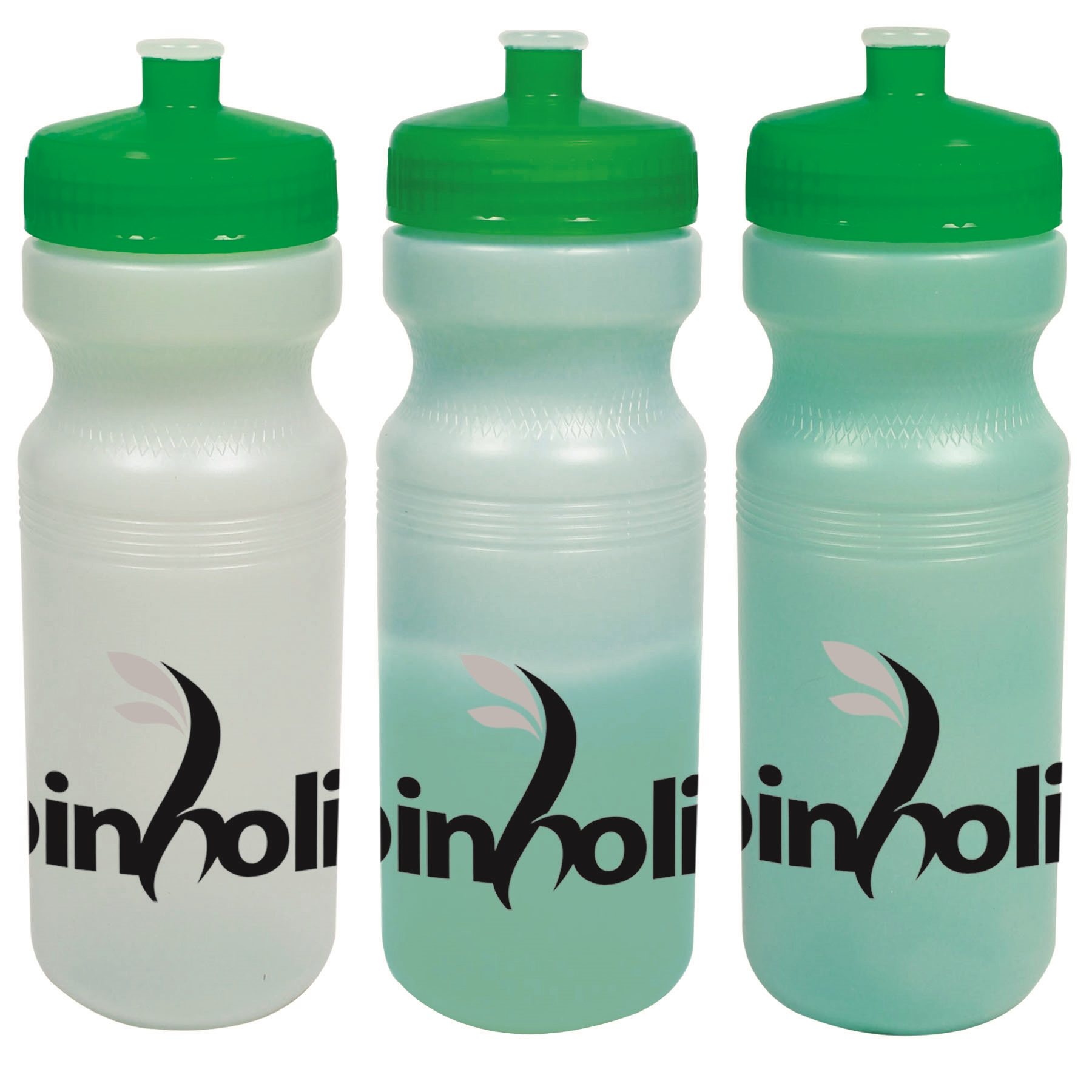 Our BPA free color changing water bottles add an extra delightful experience for people to connect with your brand. These custom color changing water bottles are perfect for organizations, teams, and companies wanting to build their brand or show appreciation with the people who matter most to their business or cause. The water bottle is clear when not used and changes color when filled with cool water or sports drink. You can have your logo, design or message prominently placed onto the bottle and have it be a focal point for the fun color changing experience people can enjoy. The bottle’s shape and form makes it convenient for bike riders, athletes, and students to use while on the go. Branded color changing bottles make good gifts for active and lively people.