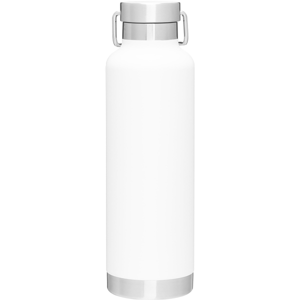 - 24 oz double wall 18/8 stainless steel thermal bottle with copper vacuum insulation, threaded stainless steel insulated lid, swing handle, high polish stainless steel rim, stainless steel base, and powder coated finish · gift box included