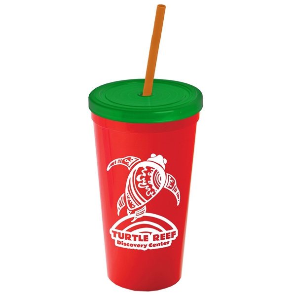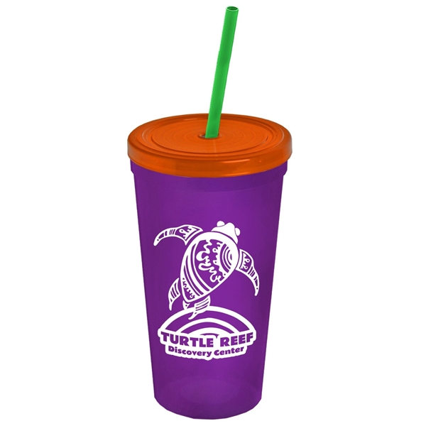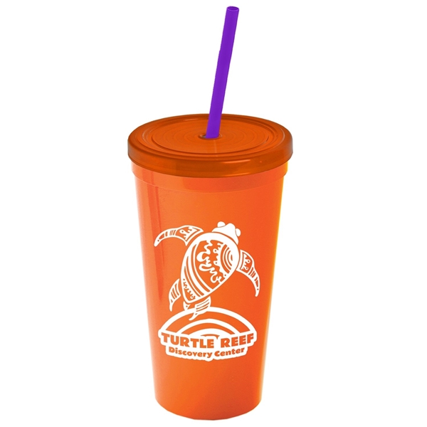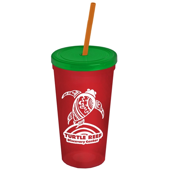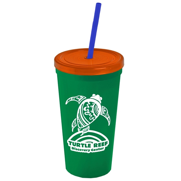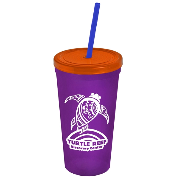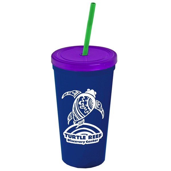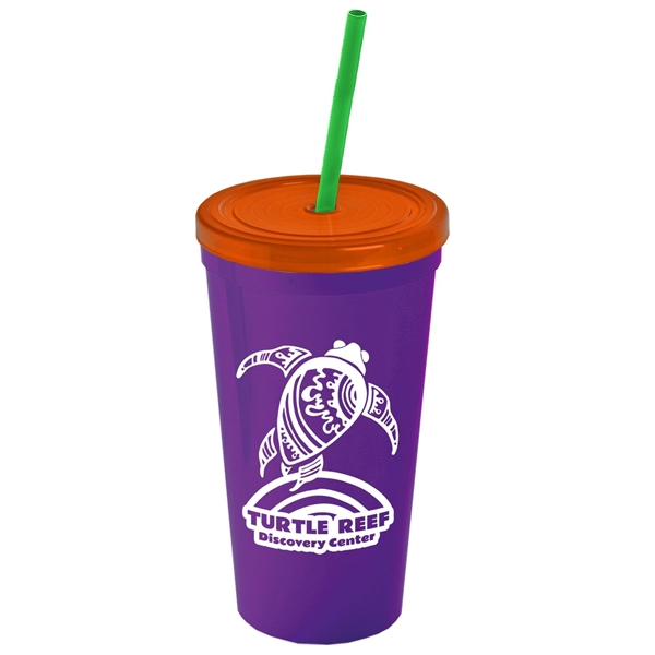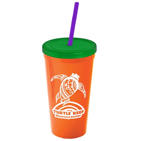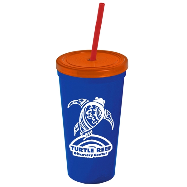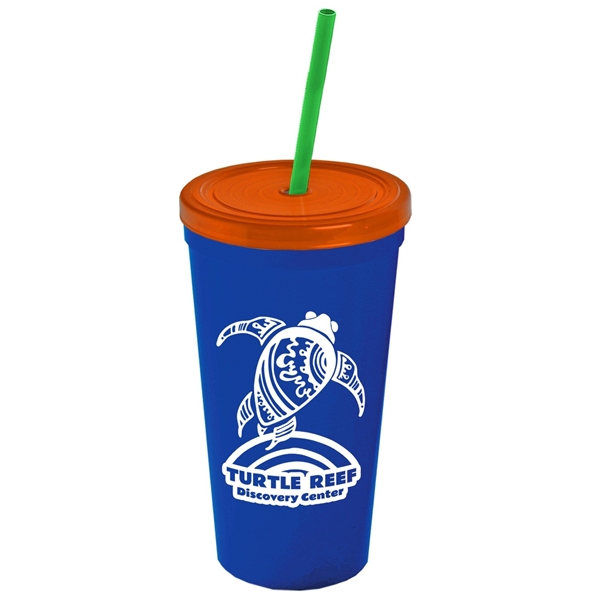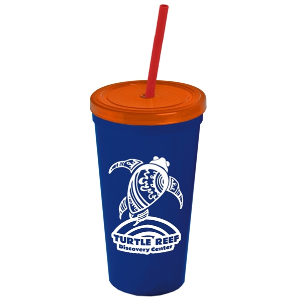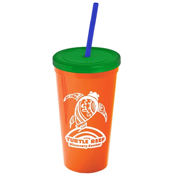 About this Promotional 24 oz Stadium Plastic Tumbler Cup With Straw And Lid:
