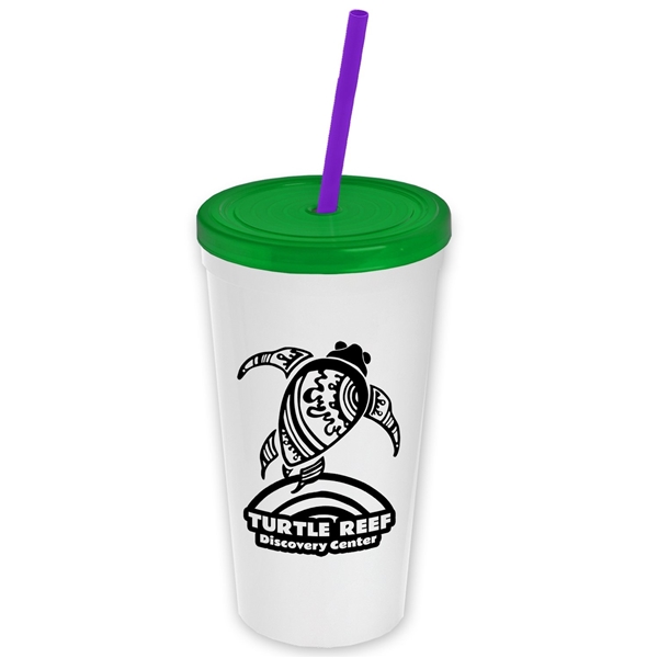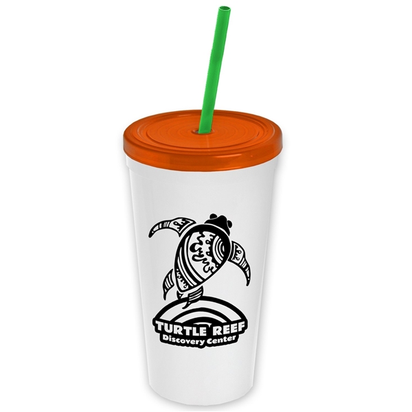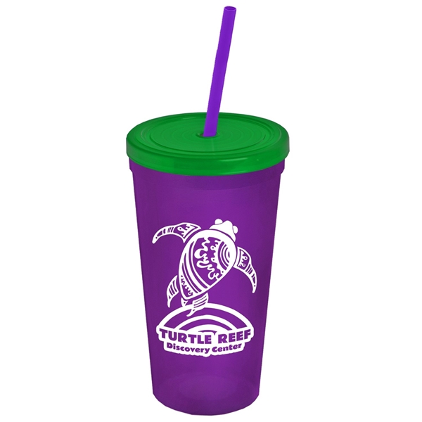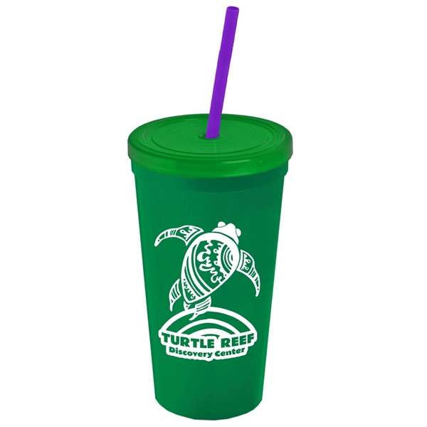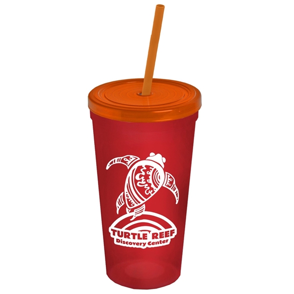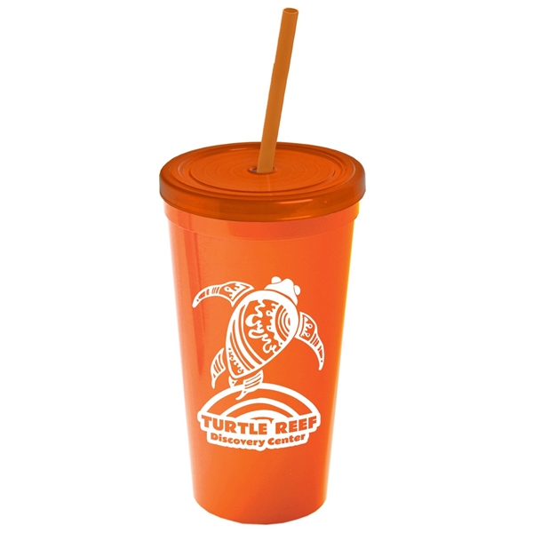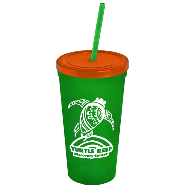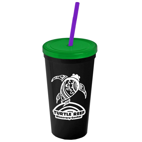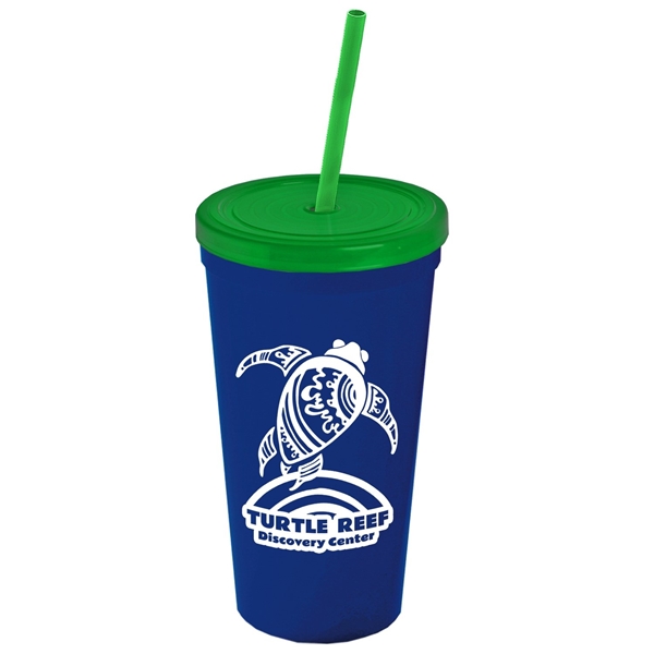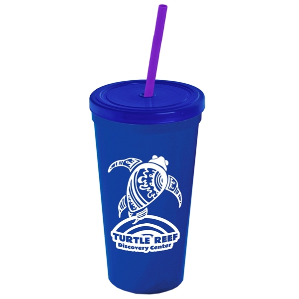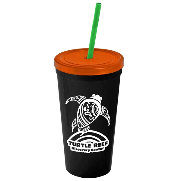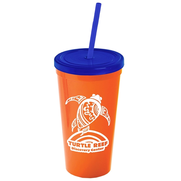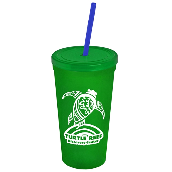 About this Promotional 24 oz Stadium Plastic Tumbler Cup With Straw And Lid: