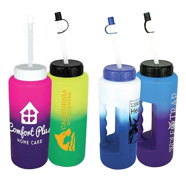 About this Promotional 32 oz Mood Grip Water Bottle with Flexible Straw: