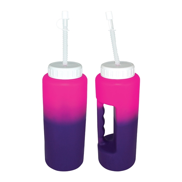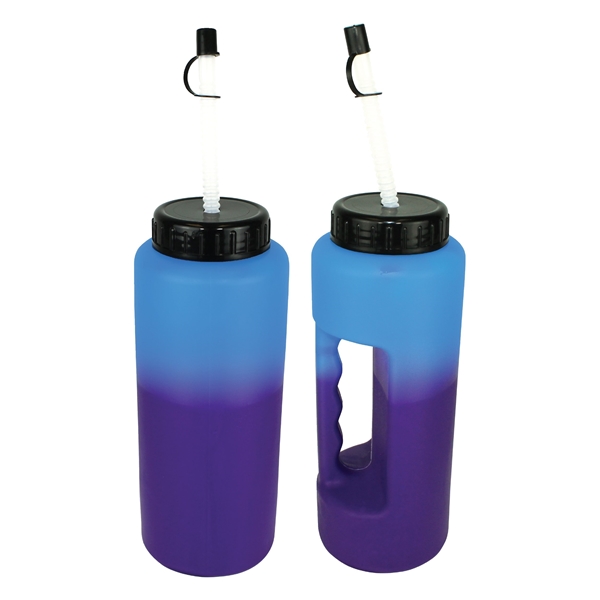The 32 oz Mood Grip Water Bottle with Side handle and Flexible Straw is the perfect promotional product for your brand for several reasons. Its practicality and eye-catching design make it a popular choice among individuals of all ages. The color-changing feature adds an element of fun and intrigue, making it a memorable item that sparks conversations and draws attention. By imprinting your logo or custom design on this water bottle, you create a highly visible and useful promotional product that will be used daily, showcasing your brand to a wide audience. Its large capacity and ergonomic design with a side handle make it a convenient choice for those leading an active lifestyle. This water bottle is a versatile and appealing promotional tool that will attract new customers to your brand, promote your message, and reinforce your commitment to quality and innovation.Special Instructions: