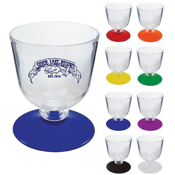 About this Promotional 7 oz Short Stem Plastic Wine Glass with Your Choice of Base Color: