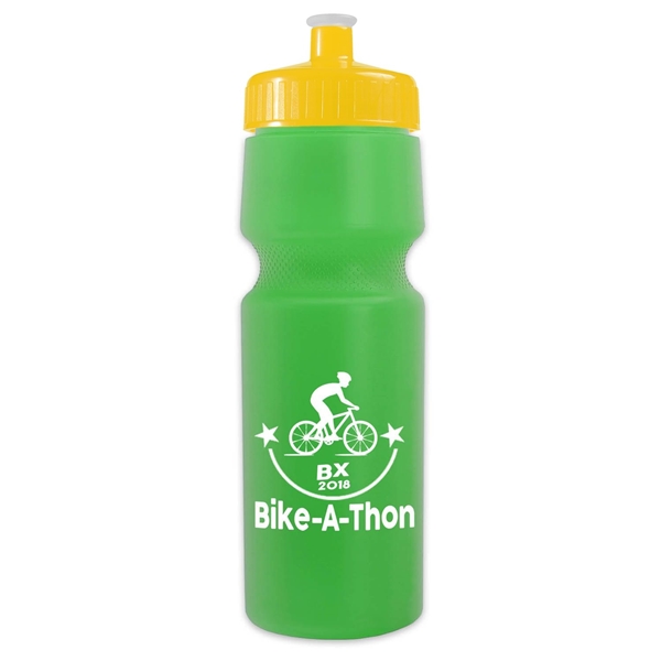 - This 24 oz high-density sport bottle features a push-pull lid and a contoured design for a comfortable, easy grip. With mix-and-match bottle and lid color options, it’s a customizable and practical choice for active lifestyles.