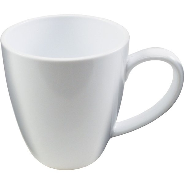 - 14 oz. Bistro Plastic Coffee Mug with oversize "C" handle is Made in USA of durable high quality SAN Acrylic Plastic in an elegant new style. BPA free and recyclable. Dishwasher safe.