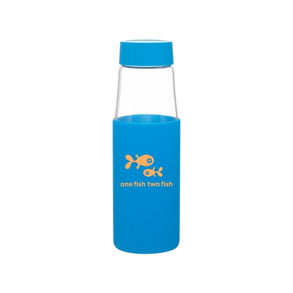 - 20 oz single wall borosilicate glass bottle with threaded lid and matching protective silicone sleeve