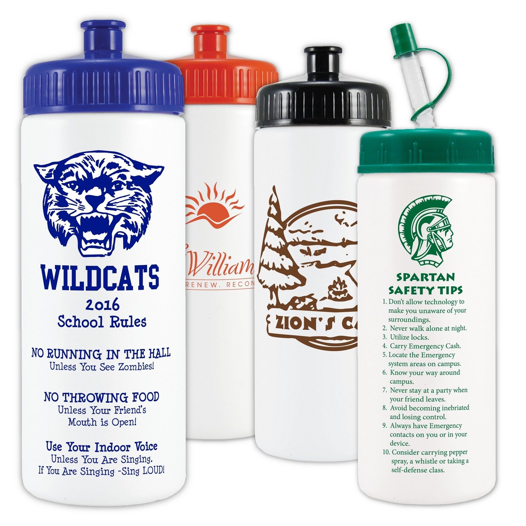 - Keep your staff & students both Hydrated and Informed by utilizing the large imprint area to print important information such as: Dates to Remember, Campus Safety Information, Health Tip, Rules & Regulations, Important Emergency Tips and Phone Numbers.