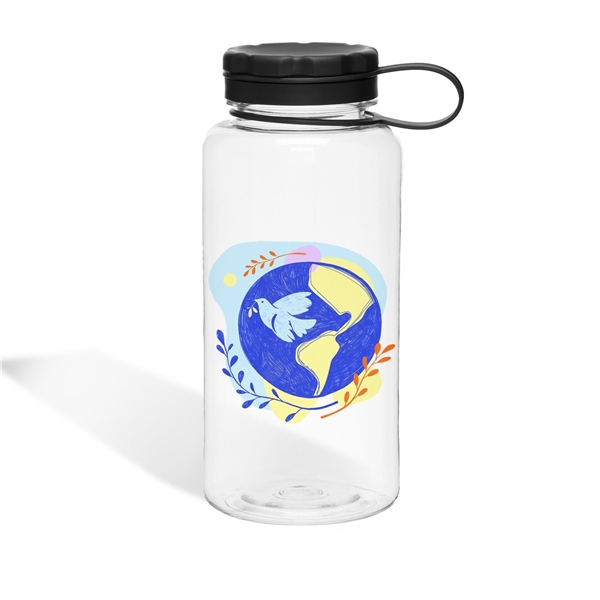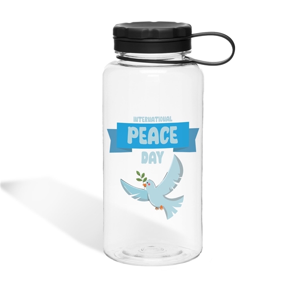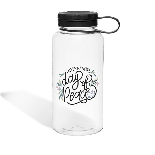 - 34 oz single wall [BPA-free] Eastman Tritan copolyester bottle with threaded lid and carrying handle · for cold beverages