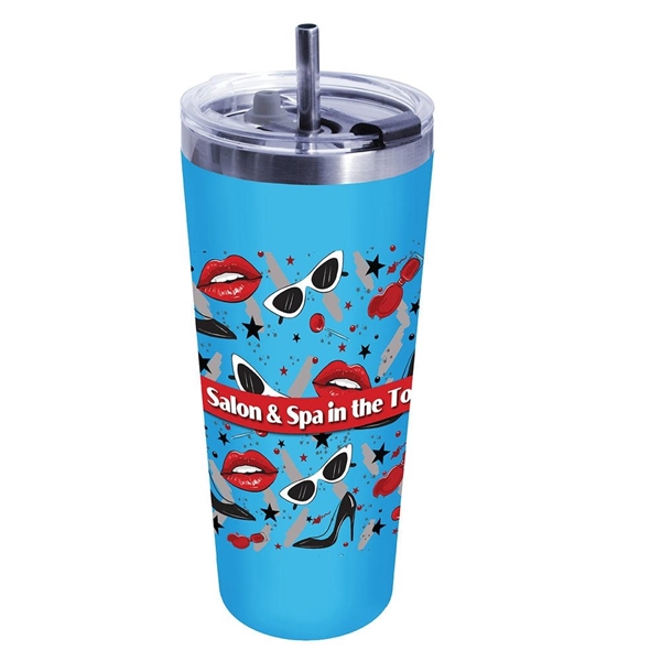 About this Promotional 22 oz Memphis Tumbler With Flip Lid Straw - Gift Set, Full Color Digital: