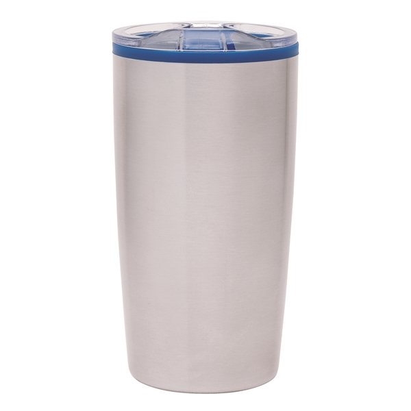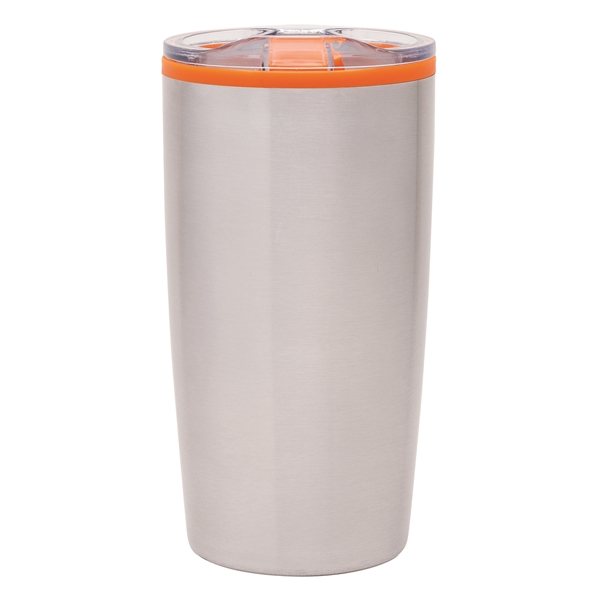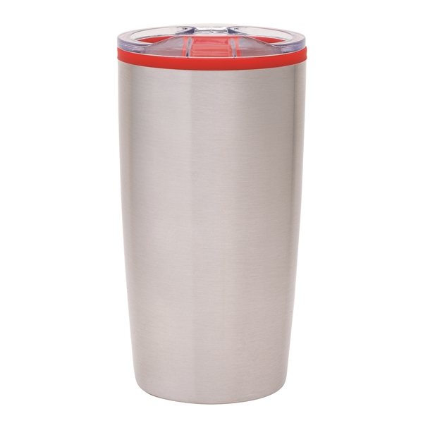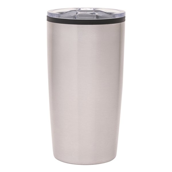 - The Outback 20 oz stainless steel double-wall tumbler features a color polypropylene inner liner, clear lid with colored slide closure, silicone seal, and non-slip base pad.