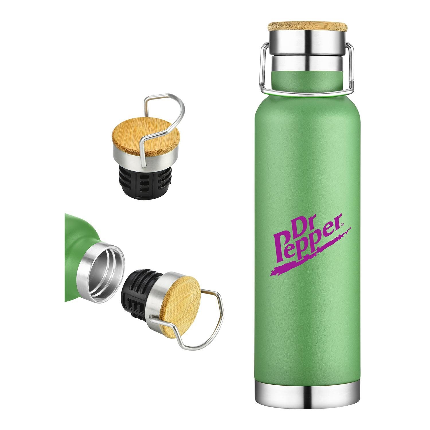 About this Promotional 22 oz Green Double - Walled Stainless Steel Tumbler w / Bamboo Screw - On Cap, Carry Ring: