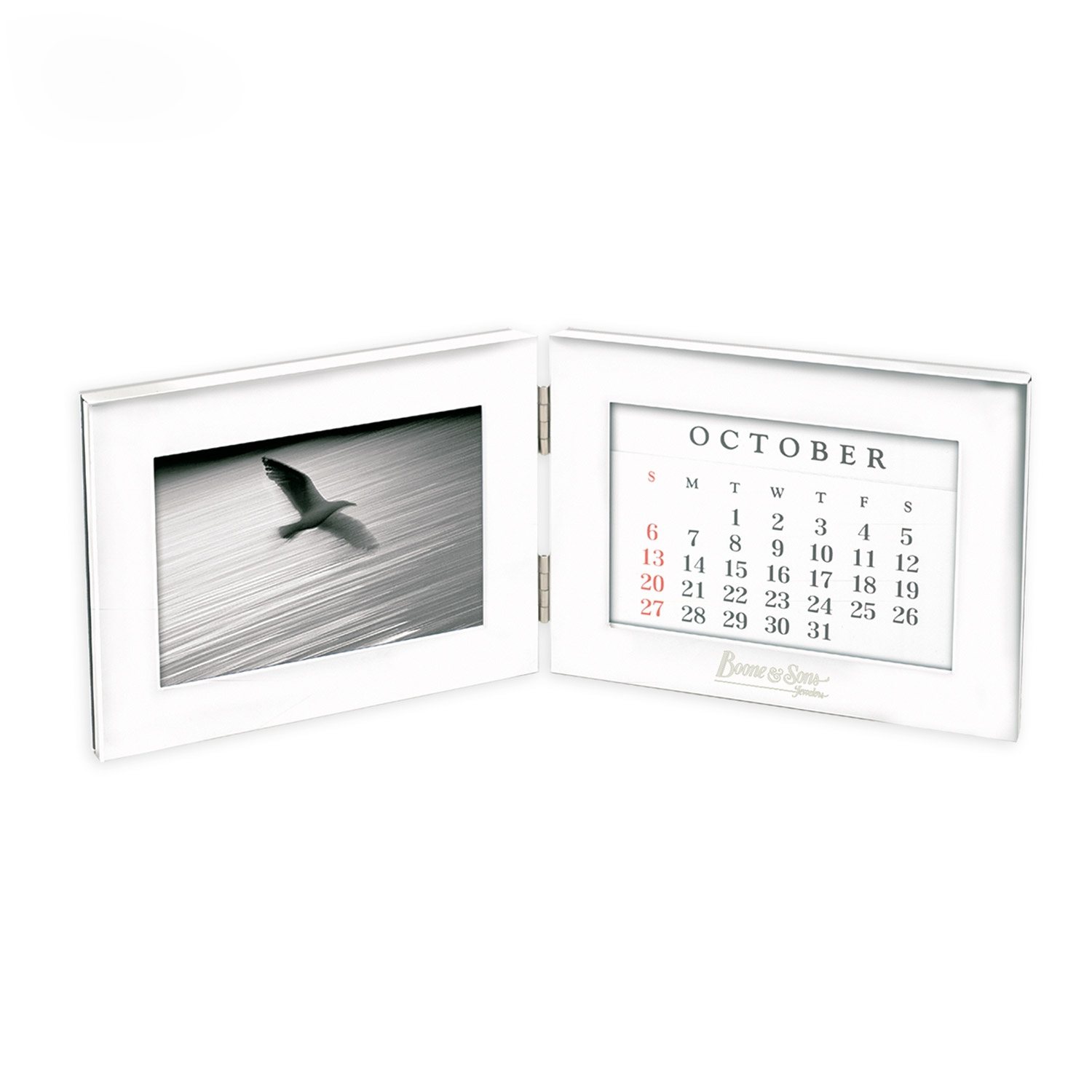 - Fold-up 4" x 6" photo frame and perpetual calendar.