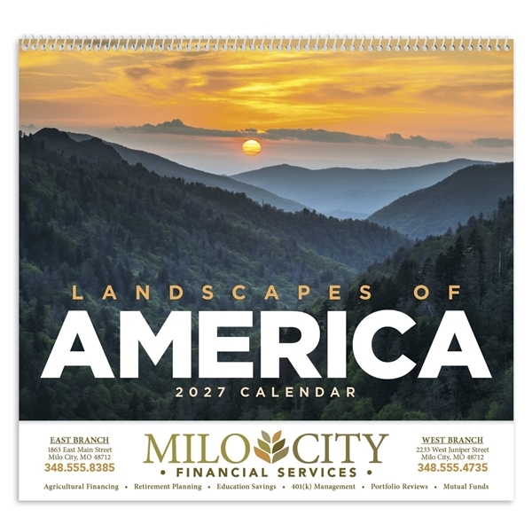 The Landscapes of America - Spiral Calendar is a natural fit for busy office environments—think front desks, break rooms, and in the hands of customer service reps scheduling appointments. In retail, it helps clients mark sale dates, track product launches, or plan seasonal promos. In financial advising, this custom wall calendar is a subtle, useful nudge to keep your firm top of mind every time the next quarterly review rolls around. And don’t underestimate the insurance agents: there’s no better way to say “we’re here for you all year” than a calendar that’s with your clients through thick and thin.