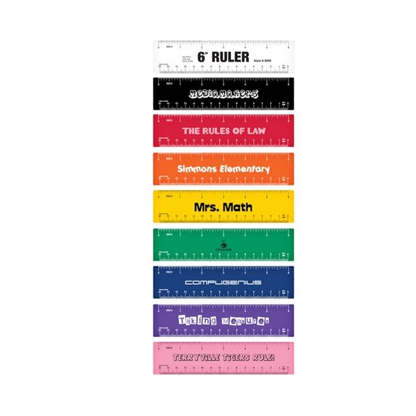 - 6" Rulers are available in 9 colors to choose from offering a large imprint area.